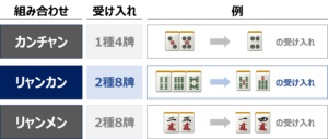 の2種類の受け入れがあります。またそれぞれ牌数は4枚です。